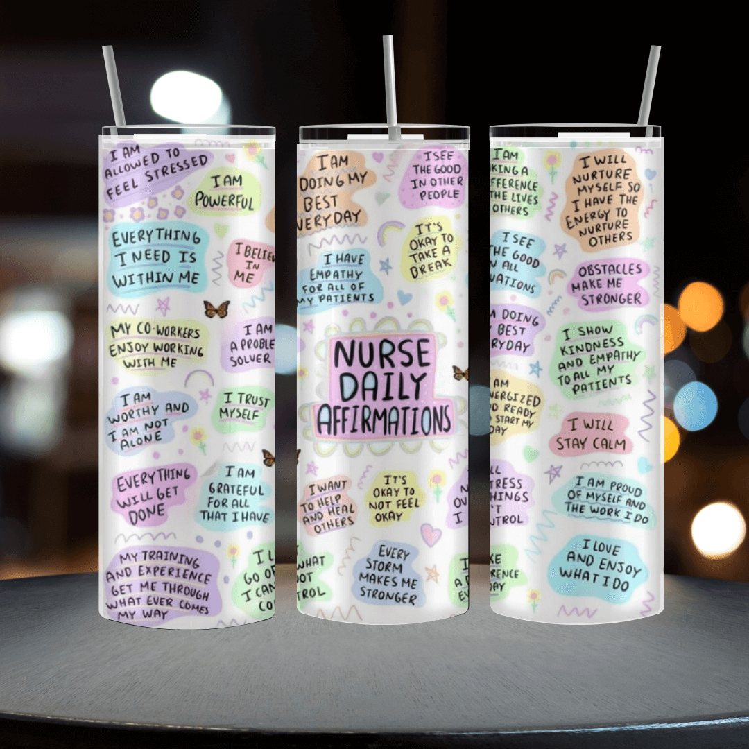 A Tumbler That Will Last Invest in a tumbler that is both durable and stylish with the Nurse Positive Affirmations Tumbler. Made from 18/8 stainless steel, this tumbler is rustproof and non-toxic, ensuring that your drinks stay fresh and safe. The double-wall vacuum insulation keeps drinks at the perfect temperature, while the skinny design makes it easy to hold and transport. Plus, with its reusable metal straw, this tumbler is an eco-friendly alternative to disposable cups.